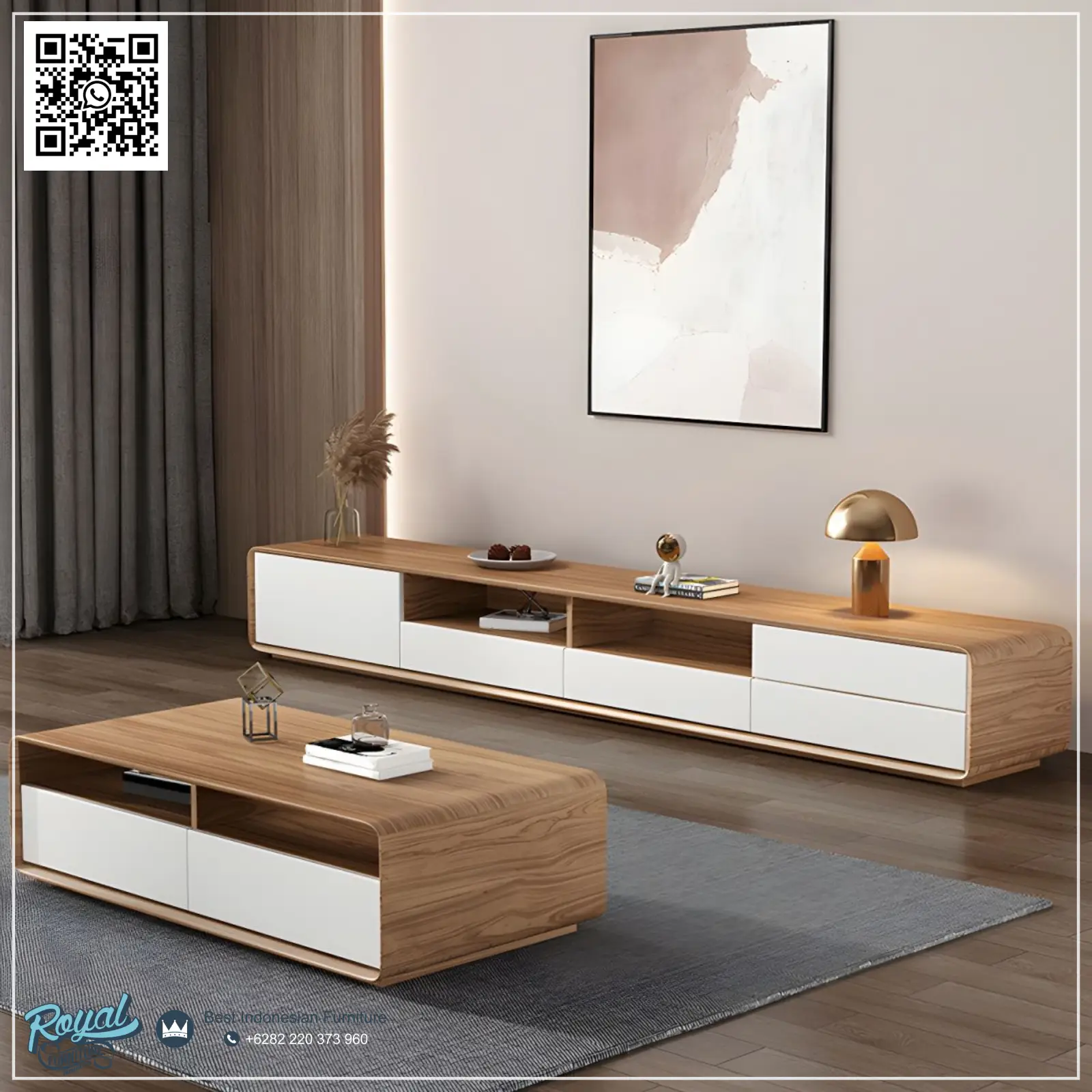 Untuk konsultasi dan tanya harga Bufet TV Minimalis Media Console Scandinavian, Bisa langsung kontak kami – Whatsapp dan simpan nomor CV. Royal Furniture. Untuk mendapatkan info terbaru furniture jepara yang sedang populer serta promo terbaiknya.