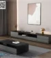*Harga Hubungi CSBufet TV Mewah Marmer Solid Wood Jati Premium – Mengusung gaya modern kontemporer dengan sudut melengkung yang halus (rounded edges) dan tampilan low-line yang memberikan kesan lapang pada ruangan. Set furnitur ruang tamu modern Furniture Indonesia, menampilkan meja kopi persegi panjang dan kabinet TV yang serasi dengan finishing kayu alami dan putih. Material Kabinet Bufet… selengkapnya