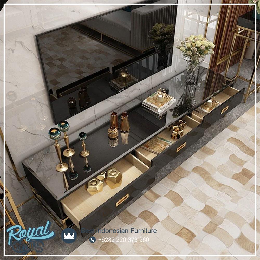 Model Meja TV Mewah Stainless Minimalis Duco Warna Hitam